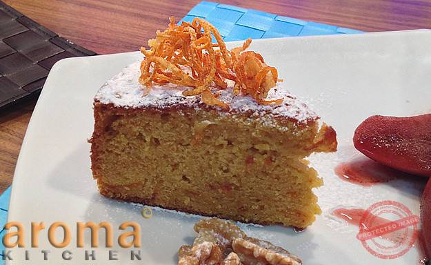 Trim the tops off the oranges and discard. Also , cut the oranges lengthwise into quarters. Bring 6 cups of water to a boil in a saucepan; add oranges. Bring the water back to the boil then drain. Repeat boiling process twice more with fresh water. Put the cooked oranges, caster sugar and 4 cups water into a sauce pan over medium heat. Cook stirring often, until sugar dissolves and orange rind can be easily pierced with a fork. This should take roughly 30 minutes. Remove the pan from heat and allow to cool completely to room temperature. You should end up with a syrup in the pan. You are now ready to start mixing the cake so heat oven to 170`c. Grease a 10 inch round cake pan with butter and dust with flour and also line the bottom with baking paper. Put aside while you prepare the cake. Whisk together flour, baking powder, and baking soda in a medium bowl and set aside. Remove the orange quarters from syrup, discard any pips and put oranges into a bowl of a food processor. Pulse until oranges form chunky puree. Add the icing sugar, the prepared flour mixture, vanilla, eggs and process until incorporated for approximately 2 minutes. Pour in the olive oil and orange juice and continue to pulse until combined. Pour the batter into prepared pan. Bake for 20 minutes in the oven and allow to cool before serving sprinkled with a little sea salt on top.