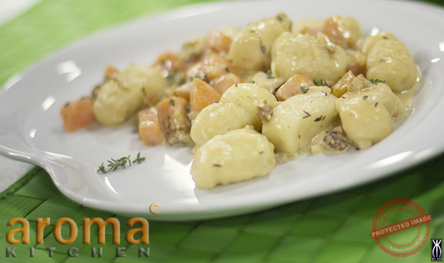 Parmesan gnocchi with creamy butternut squash, walnuts and thyme