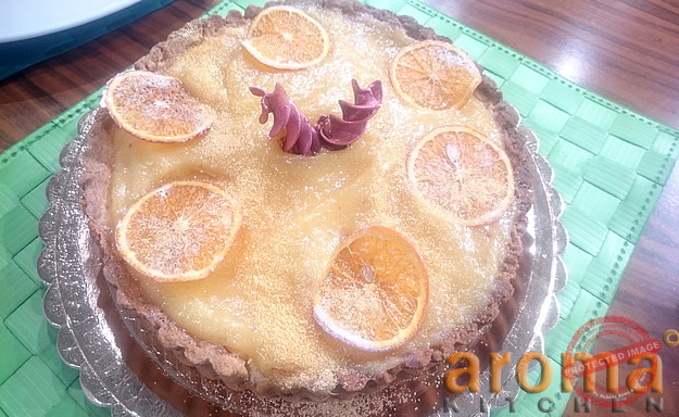 Start this recipe by lining a 24cm flan tin with sweet pastry. Mix all ingredients for the filling together, pour into the mould and bake at 180`c for 20 minutes. To make the glaze for the top, mix the 150g sugar, 50ml water and 150g pineapple and boil at 110`c till mixture becomes thick. Then take off the heat and mix in 50g of diluted gelatine powder. Then leave to cool and then add the mixture to the top of the tart as a garnish.