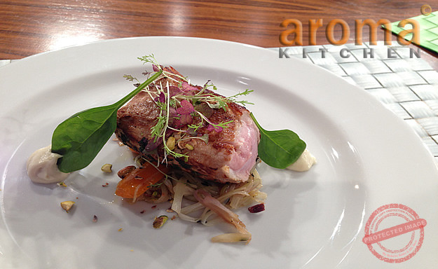 To make confit salt, combine garlic, herbs, salt and spices. Sprinkle 2 tablespoons in a 7cm-deep, 25 x 35cm baking dish. Add the pork, skin-side up. Rub with the remaining confit salt. Cover and place in the fridge for 24 hours to cure. Preheat oven to 110C. Remove the confit salt from the pork and dish. Discard. Pat dry with paper towel. Return pork to the clean baking dish. Add the combined oil. Cover with foil. Bake for 7 hours or until very tender. Cool in the oil for 1 hour. Cover and store in the fridge, covered with oil, for up to 2 weeks. Drain pork, reserving oil. Place pork, rind-side down, on a lined tray. Top with paper, another tray and 2-3 cans to compress. Chill overnight. Preheat oven to 220C. Score the pork rind in a diamond pattern. Cut into 2cm-thick slices. Next, in a large, heavy-based saucepan, combine the celeriac, milk, cream, shallots, butter and salt and bring to a gentle simmer over medium heat. Reduce heat to low and simmer very gently, uncovered, stirring occasionally, for 35 mins or until the celeriac is tender enough to mash with a spoon. Working in batches and using a slotted spoon, transfer the celeriac and shallots to a blender (preferably a high-powered one) and blend until smooth, adding enough of the cooking liquid to form a very thick, creamy and completely smooth puree. Transfer to a serving bowl.