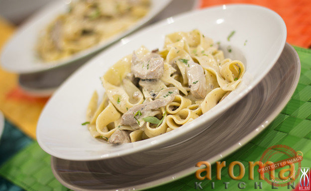 • Cooked papardalle pasta for serving