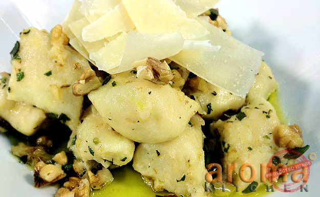 Potato gnocchi with sage, walnuts and Parmesan cheese