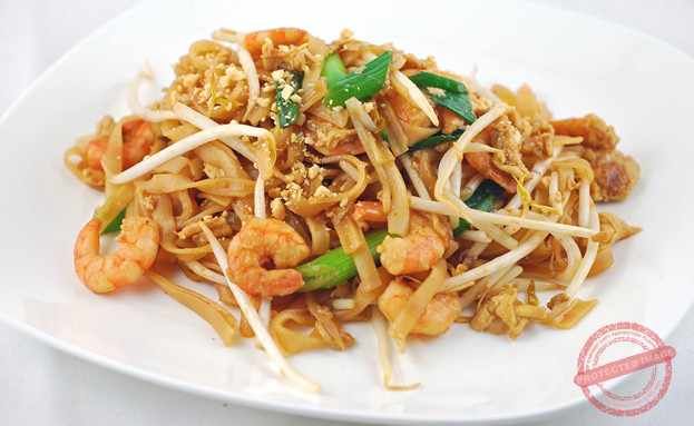 Heat a wok until hot, then add in the oil, sliced onion, chilli, garlic and ginger and stir-fry for one minute. Add in the chopped chicken and fry for 2 minutes, followed by the prawns and cook for 2 minutes more. Next, add in the tamarind paste, fish sauce, soy sauce, good pinch black pepper and lime juice and mix well. Stir in the noodles and bean sprouts, followed by the beaten eggs and continue to fry for 2 minutes or until the egg is cooked. Immediately serve the Pad Thai noodles into 2 serving plates and sprinkle with chopped coriander leaves and the chopped toasted peanuts.