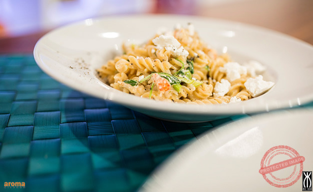 Għaġin mingħajr glutina bil-feta, gambli, spinaċi u asparaġi