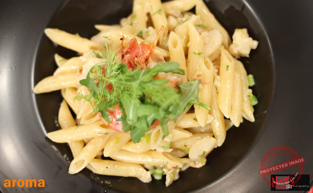 Għaġin bil-gambli, ‘scallops’,asparaġi u xibt frisk