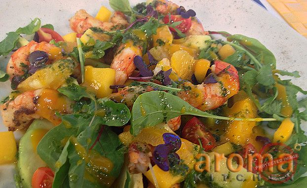 Prawn salad with mango, avocado and wild rocket