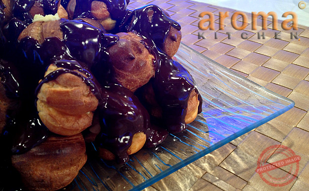Profiteroles with rich chocolate sauce
