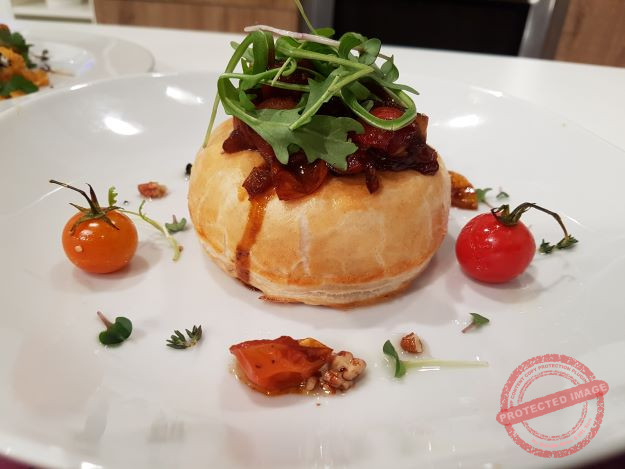 Puff pastry baked brie with tomato chutney