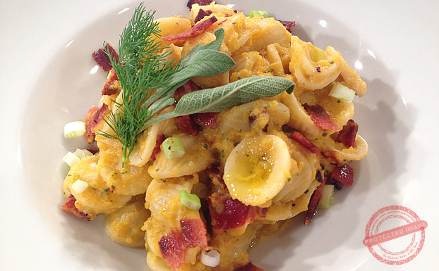 Pumpkin and crispy bacon orecchiette