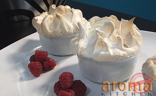 Start by cutting the Swiss roll into 12 slices. You need to have two slices for each ramekin. Place a slice of Swiss roll into the base of each ramekin. Next, pour a tablespoon of cold custard in each ramekin, followed by ½ of the mixed berries on top. Put another piece of Swiss roll into each ramekin and the remaining berries on top. Put the ramekins aside while you prepare the meringue. In a medium bowl, whisk the egg whites to soft peaks. Add the caster sugar and continue mixing till you have a thick, smooth meringue. Place spoonfuls of the meringue on top of each filled ramekin, covering the berries and custard completely. Put the ramekins in the oven for 10-15 minutes, at 180`c. The meringue is ready when it just begins to brown on the ends. Take the ramekins out of the oven and serve the queen of puddings immediately while still warm. (Serves 6)