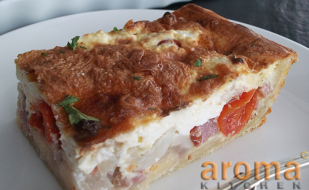 Quiche Lorraine with ricotta cheese and tomatoes