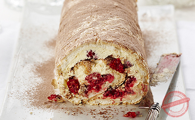 Preheat the oven to 200`c. Grease and line a 23cm x 30cm Swiss roll tin. Whisk the eggs and sugar in a bowl until pale and fluffy. Fold in the flour and spoon the mixture into the tin. Bake in the oven for 8-10 minutes, or until light and springy to the touch. Remove from the oven and turn the sponge out onto another piece of greaseproof paper. For the filling, spread the jam onto the sponge. Whip the cream with the icing sugar and spread over the jam, leaving a small gap around the edges. Place a row of raspberries along one edge, lengthways and roll up the sponge to cover the raspberries and create a lovely Swiss roll. Place onto a serving plate, dust the top with icing sugar and decorate the top with extra raspberries.