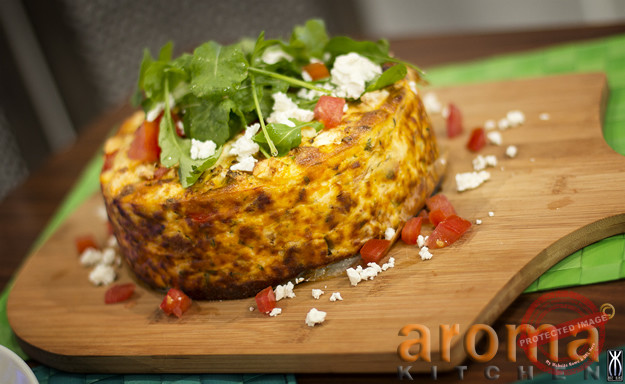 Start this recipe by lining a spring-form 22cm cake tin with nonstick baking paper and brush liberally with a tablespoon of butter substitute. Next, mix together the ricotta, eggs and parley and season well with salt and pepper. Put aside while you prepare the filling. Heat the remaining tablespoon of butter substitute in a pan and brown the chorizo sausage for 3 minutes. Add in the spring onions and diced pepper and cook for 4 minutes. Tip this mixture into the ricotta mixture, along with the diced tomatoes. Mix together well then carefully spoon into the prepared tin. Smooth out, then scatter over the sliced red onion followed by the crumbled feta cheese. Bake in the oven for approximately 40-45 minutes at 200`c. Allow to sit in the tin for 5 minutes before removing. Can be served hot or cold.
