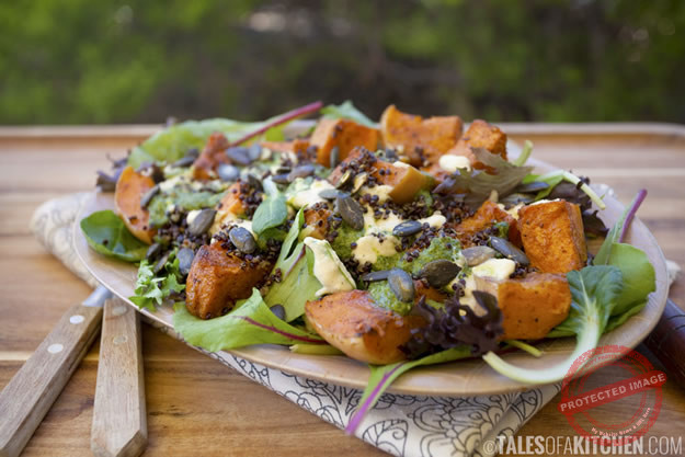 Roasted pumpkin and red onion salad with Goat`s cheese