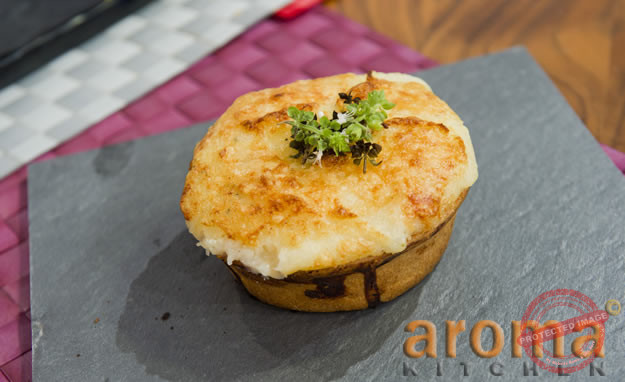 Start be frying the garlic, onion, herbs, wine and let it reduce then add the flour and water. Meanwhile, take the skin off the salmon, along with the smoked salmon and chop into chunks and fry. Peel the shell off the egg cut in halve before adding it to the tart to join with the salmon. Mix together and spoon the sauce over the tart. Now spoon blobs of mashed potato all over the salmon. Use a palette knife to spread it evenly over the surface and then make some indentations to form a pattern. Just run the palette knife in lines, pressing it down at 1 inch (2.5 cm) intervals. Sprinkle the 2 cheeses all over the surface of the potato, then place the dish on a baking tray and bake in the oven for 30–40 minutes, or until the surface is golden brown and the sauce underneath is bubbling. Leave the pie to settle for 10 minutes out of the oven while you cook the vegetables to go with it.