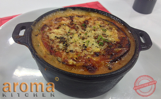 Pan fry the sliced aubergines. In another pot, melt the butter and then add the flour and mix thoroughly. Add the fish stock slowly and mix (similar to when making bechamel sauce). When this is cooked, add the raw seafood. Then in a dish, place the aubergines, then top with the seafood mix and some tomato sauce. Repeat this until you have 4 complete layers. Sprinkle grated pecorino cheese on top and bake in a hot oven for 30minutes.