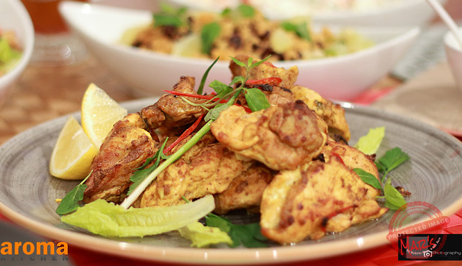 Trim off excess fats from chicken and score with a sharp knife so that the marinade goes in the chicken and squeeze the limes. Mix the remaining ingredients and roll the chicken in to coat with the marinade. Allow marinating time, grill before serving. For the yogurt sauce, combine all the ingredients together into a creamy sauce. Serve as a side sauce.