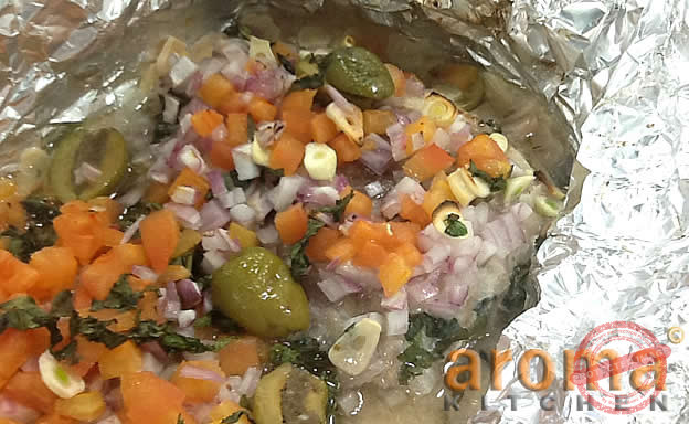 Lay the grouper fillet on a large piece of foil. Drizzle over a little olive oil. Dice the tomatoes, olives and capers together and sprinkle over the fish. Pour over the stock and white wine. Fold over the foil to create a parcel and bake in oven for 30 minutes at 160`c. To serve, place the foil parcel on a plate and carefully open up the foil exposing the fish.