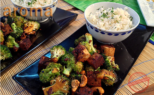 Stir-fried tofu with broccoli and cashew nuts