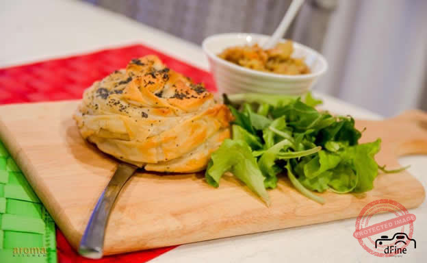 Stuffed Brie with apple and walnut chutney in filo pastry