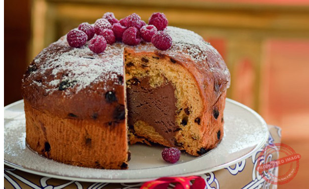 Start this recipe by making the chocolate sauce. Place the cream and chopped chocolate in a saucepan and melt together. Remove off the heat and allow to cool and thicken. Meanwhile, cut the top off the panettone and put aside. Cut the center out leaving a 2cm border. Chop up the filling into 3cm cubes, place into a large bowl and drizzle over the amaretto liqueur. In another bowl, mix together all of the filling ingredients, then carefully mix in the amaretto soaked panettone. Stuff this mixture into the panettone shell and press in well. Place on the top and chill for an hour. To serve, place the stuffed panettone onto a cake stand, drizzle over the chocolate sauce, dust with icing sugar and slice.