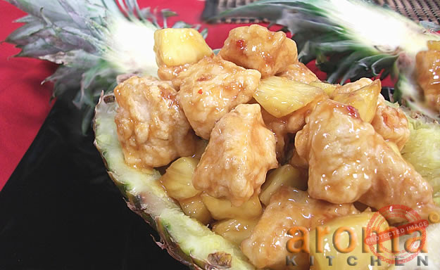 Sweet and sour chicken with fresh pineapple