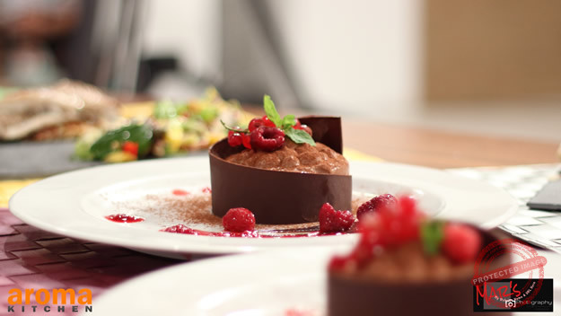 • You will also need melted milk chocolate, cocoa powder and raspberies to decorate