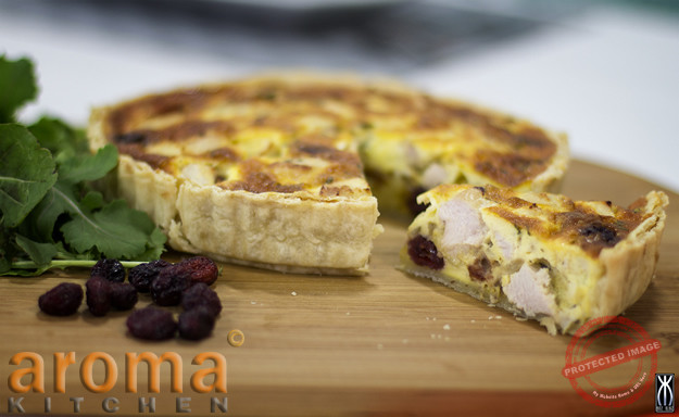 Turkey and cranberry tart with walnuts and Brie