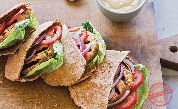 Chickpea felafel patties with pitta bread and tahini dressing