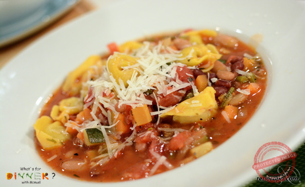 Heat the olive oil in a deep saucepan and sauté the onion and garlic together for 3 minutes. Add in the celery, carrots and zucchini and continue to cook for 5 more minutes. When the vegetables have begun to soften, pour in the vegetable stock and chopped tomatoes. Sprinkle in the chilli flakes and dried Italian herbs and season well with salt and pepper. Cover the pan with a lid, turn down the heat and simmer the soup for a further 15 minutes. A few minutes before you wish to serve the soup, add in the cooked beans and the fresh pasta tortellini to the hot soup and continue to cook for 2-3 minutes, or until the tortellini are cooked through. Stir in the chopped parsley and serve into large deep soup bowls with crusty bread on the side.