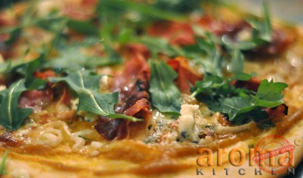 To make the pizza dough, just place all the ingredients together in a food processor and blend together for a minute or 2 till you have a soft, pliable dough. Turn out on a floured work surface and knead for 2 or 3 minutes. Place in an oiled bowl, cover with a clean tea towel and leave to rise for 30 minutes. Meanwhile, prepare the pumpkin puree by heating the olive oil in a pan. Add the garlic, chopped thyme and pumpkin and cook for 20 minutes to soften and cook the pumpkin.You may need to add 2-3 tablespoons of water half way during the cooking time. Season well with salt and pepper and remove off the heat. Puree the pumpkin with a hand blender, adding in a little more water if necessary. When the pizza dough is ready, knock back and roll out to a thin circle. Place onto your pizza pan and spread over the pumpkin puree. Arrange the mozzarella slices on top, followed by the caramelized onions. Allow to rise for another 15-20 minutes, then bake in a hot oven at 200`c, for 20-25 minutes. When ready to serve, sprinkle over the chopped walnuts and rucola leaves and drizzle over a little more olive oil.