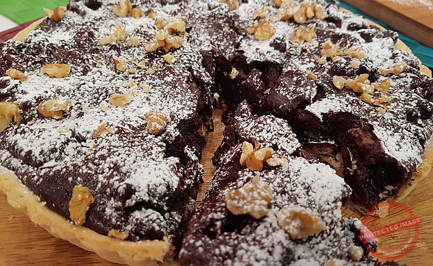 Walnut and cranberry baked chocolate tart
