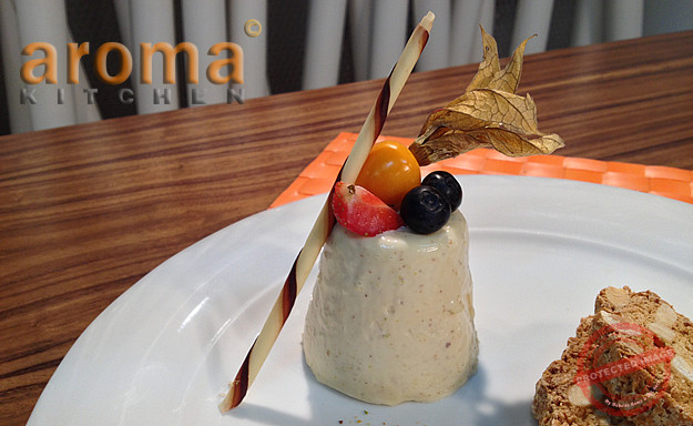White chocolate and pistachio panna cotta